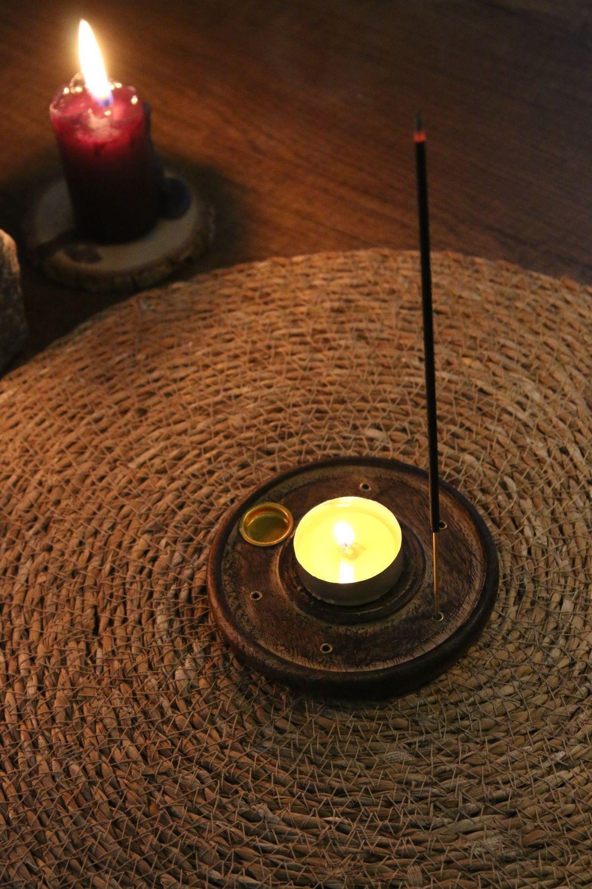 Om hecesi bütün evrenin özünü temsil etmektedir. ; Zihin, beden ve ruhun birliğini temsil eder. ; Om (Aum) Temalı Özel Tasarım Çubuk & Konik Tütsülük ile aynı anda birden çok tütsü yakabilirsiniz. ; Dekoratif ve şık yuvarlak tütsülüğünüzün ortasına mum koyarak kullanabiliriz. ; Meditasyon esnasında, günün yorgunluğunu atarken ya da özel davetlerinizde yaşam alanınıza hoş bir dokunuş katacaktır. ; Hint Gül ağacından üretilmiştir. ; Çapı 10cmdir. ; Hindistan’da üretilmiştir. ; El yapımı ve üstündeki baskılar oymadır. ; Paganca özel bez kese ile gönderilecektir.;